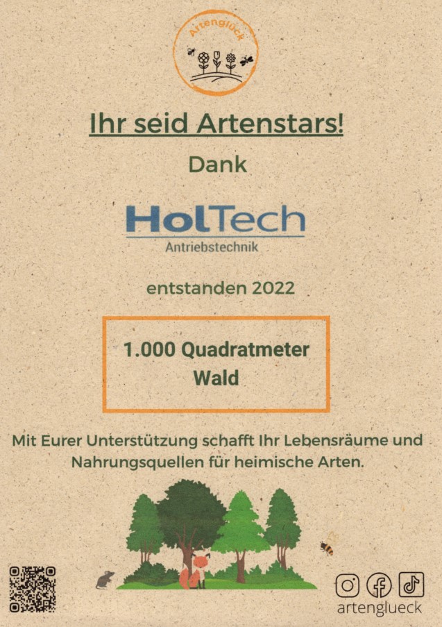 Über "Artenglück" konnte HolTech im Jahr 2022 dazu beitragen, dass 1.000 qm Wald entstanden sind.